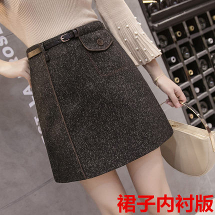 短裙秋冬装女2018新款韩版百搭毛呢高腰修身显瘦包臀a字半身裙